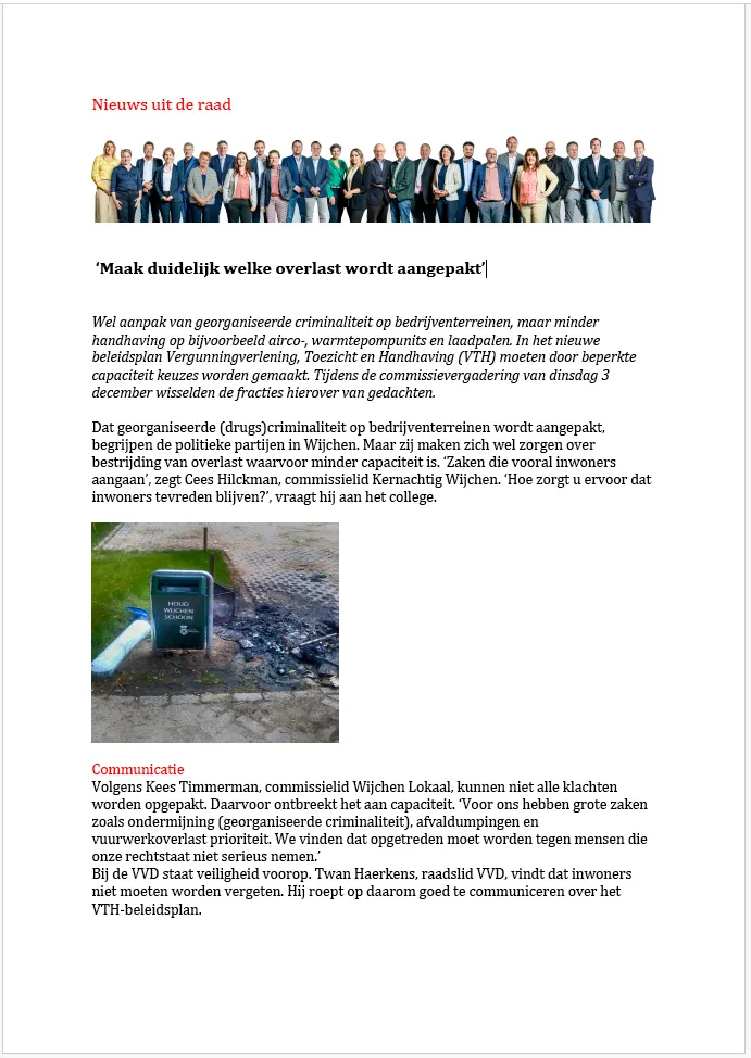 Op de site van wijchen.nieuws.nl is na iedere gemeenteraadsvergadering een (ingezonden) nieuwspagina te vinden met berichten en artikelen. Deze pagina valt buiten de verantwoordelijkheid van de redactie.