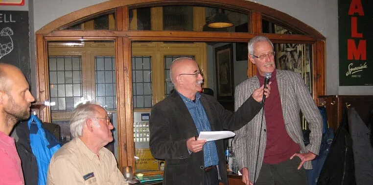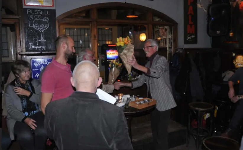 Wielerliefhebbers gingen woensdagavond naar de presentatie van het wielerboek "De Zilveren Zadelpen", gepresenteerd en geschreven door de bekende Wijchenaar Vincent Cantrijn, o.a. columnist, blogger, wereldreiziger, schrijver van wielerboeken. De presentatie was in café van Rijn in Nijmegen.