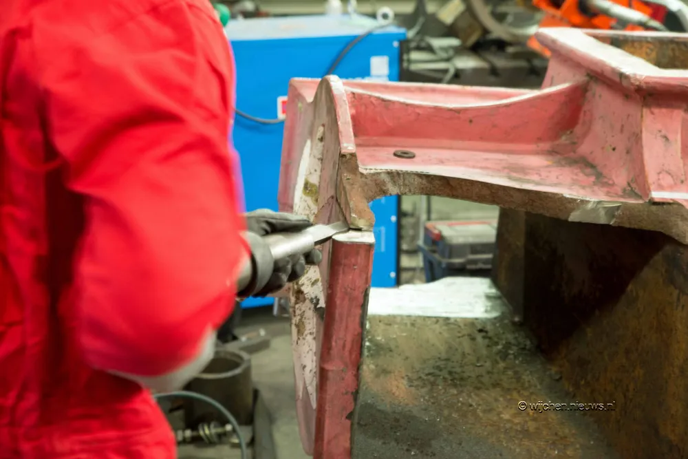 Foto's van de bovenas van de molen in Batenburg tijdens de reparatie in de werkplaats van Metalock in Strijen zijn gemaakt door Dhr. L. Endedijk.