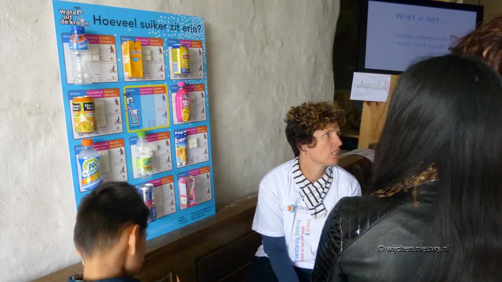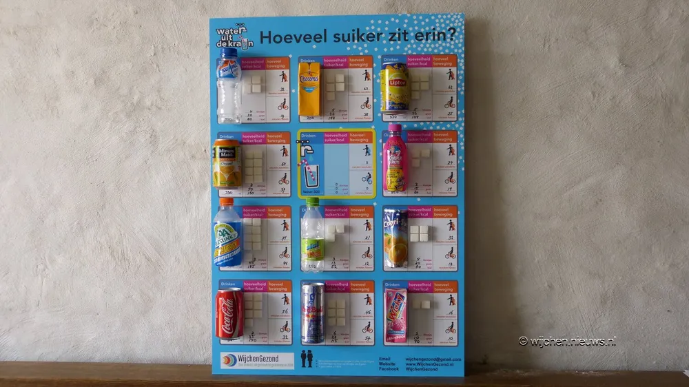 Er was speciaal voor deze dag een overzicht van de hoeveelheid gebruikte suiker in de diverse, door de kinderen zeer gewaardeerde, produkten.