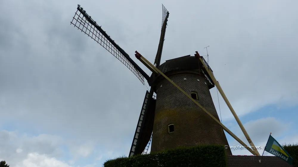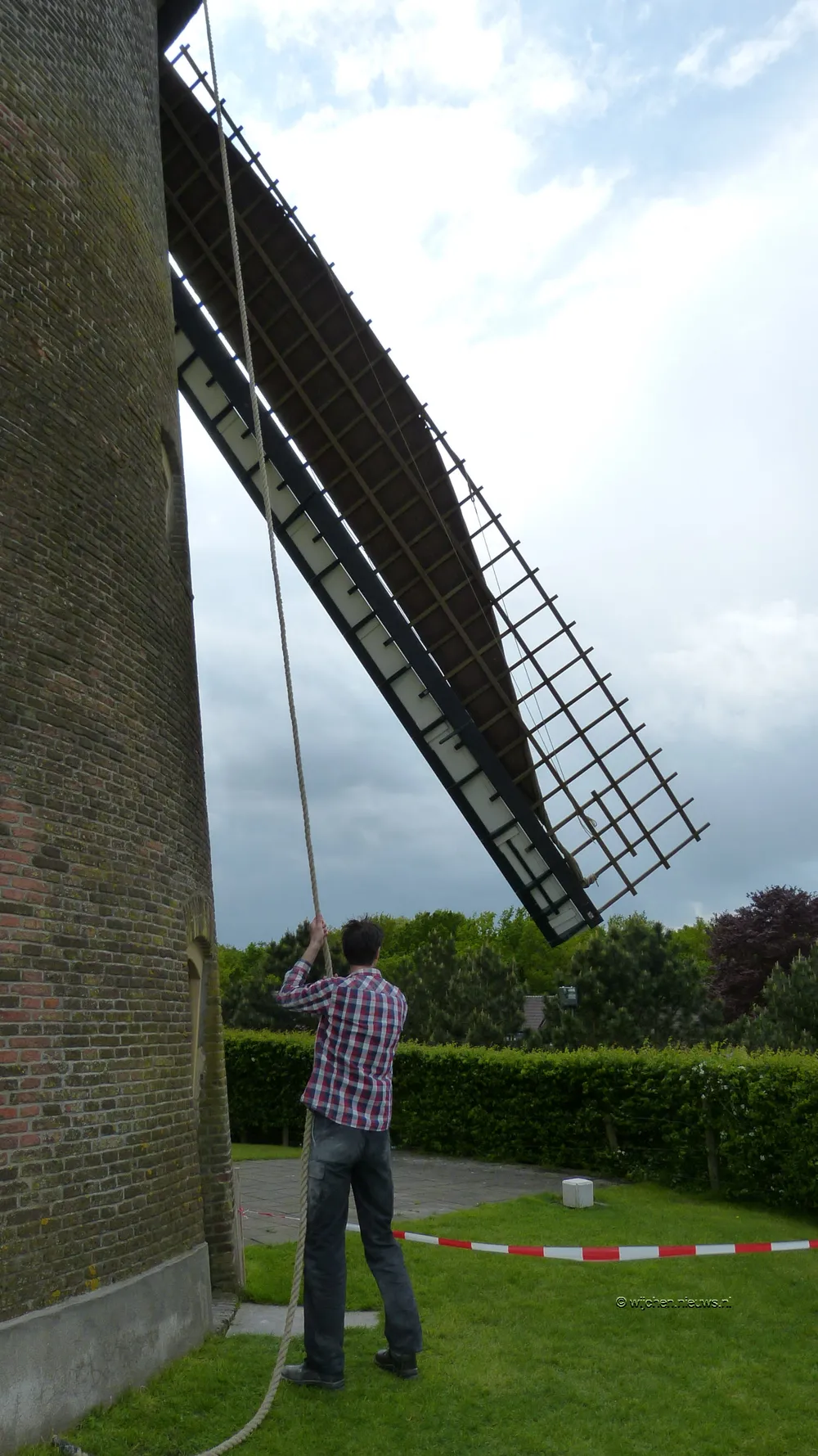 Door de straffe wind moest Jeroen zijn molen ook goed in de gaten houden. Tegelijkertijd gaf hij aan de bezoekers uitleg over de werking van de molen.