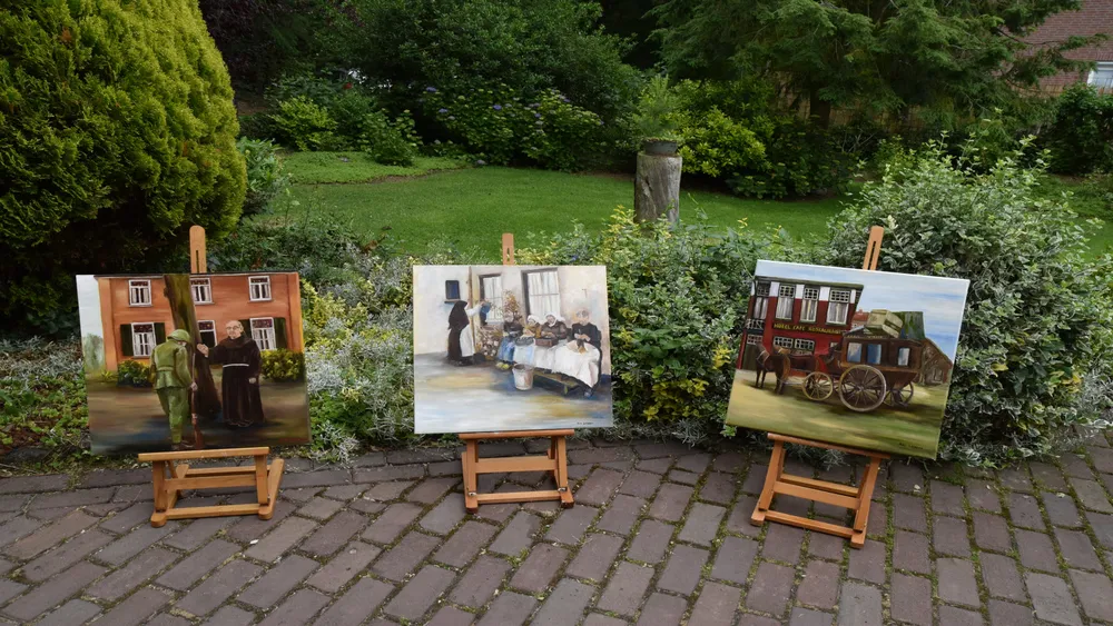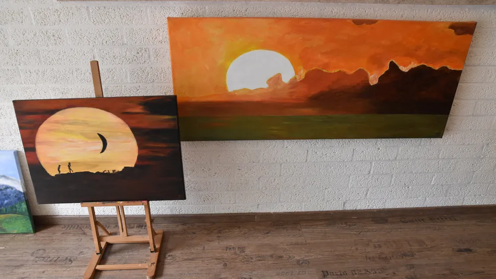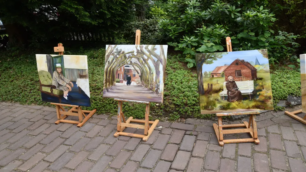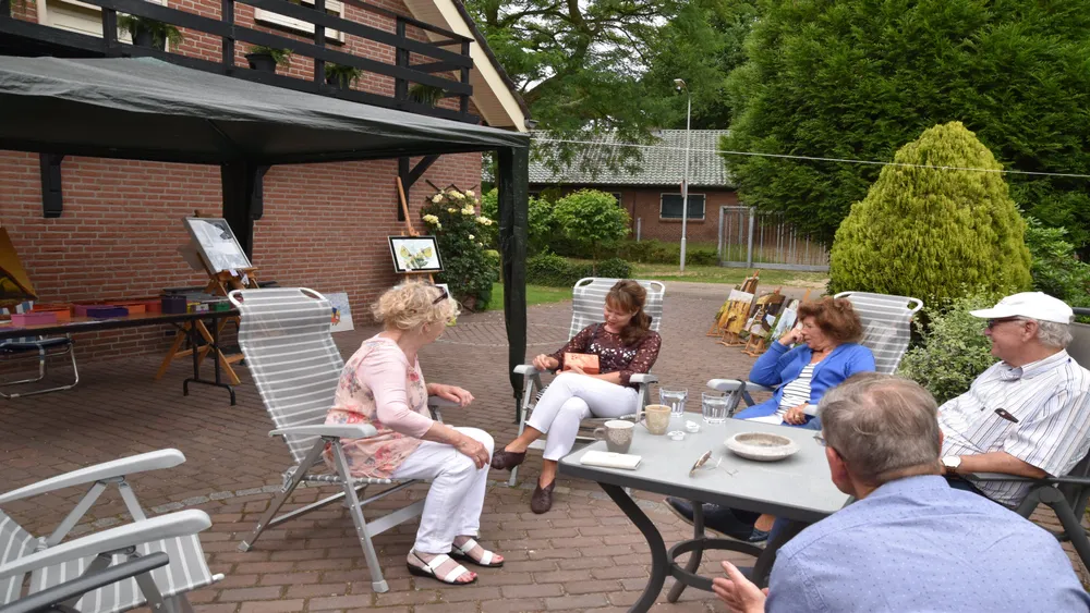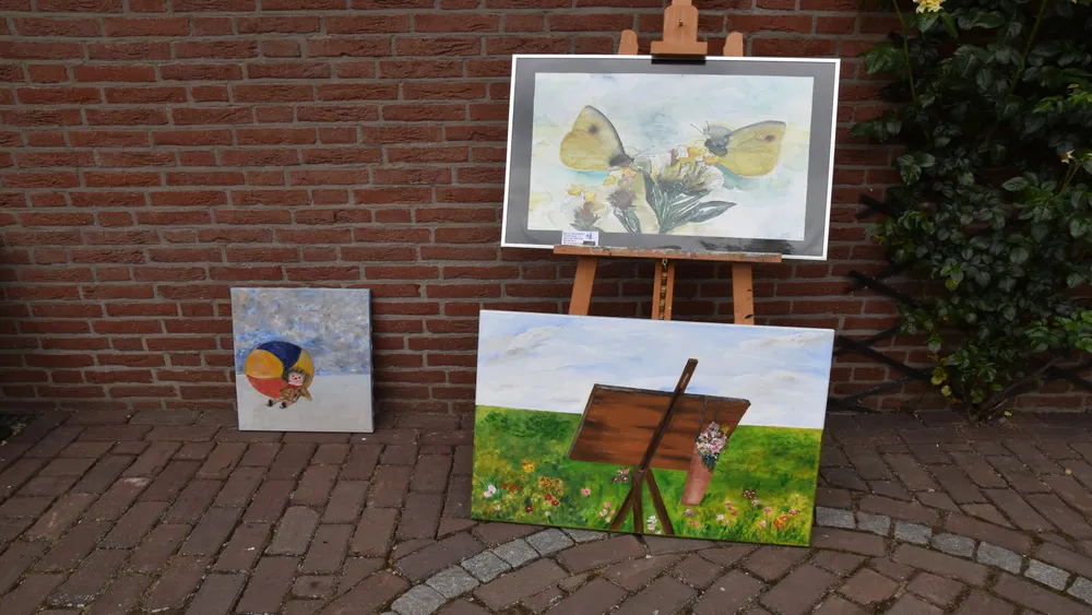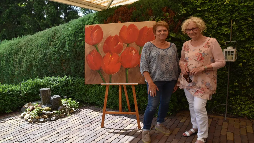 Ans Jelissen en Rieky Oosterhout exposeerden aan de Urnenveldweg. De dames schilderen met veel passie, maar vinden het ook vooral gezellig om te schilderen.