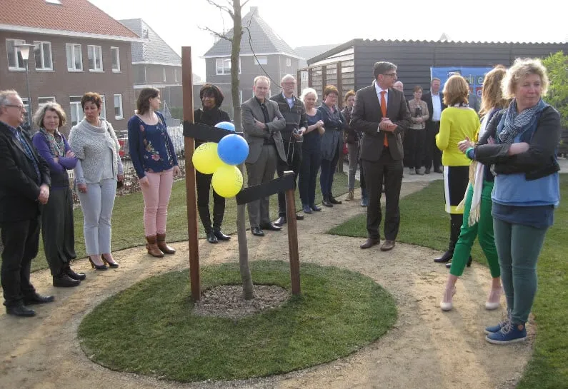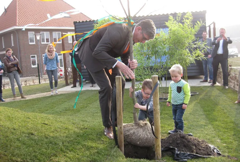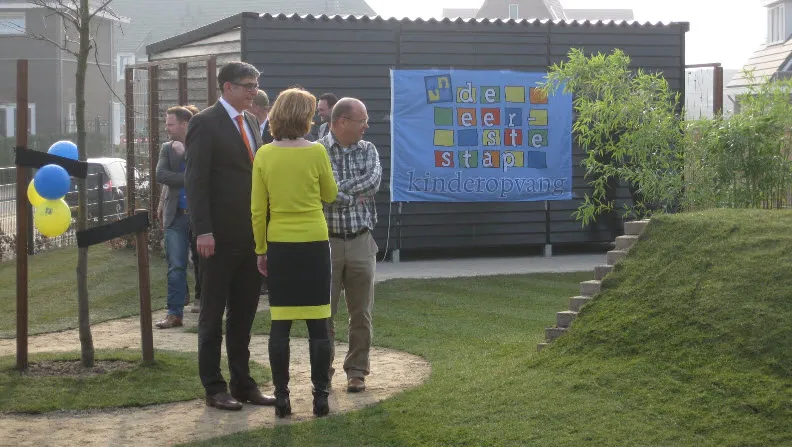 Afgelopen woensdagmiddag mocht wethouder Paul Loermans de nieuwe locatie van de eerste stap aan de Warmoezenier officieel openen. De openingshandeling was het planten van een fruitboom, met hulp van twee kinderen van de kinderopvang.