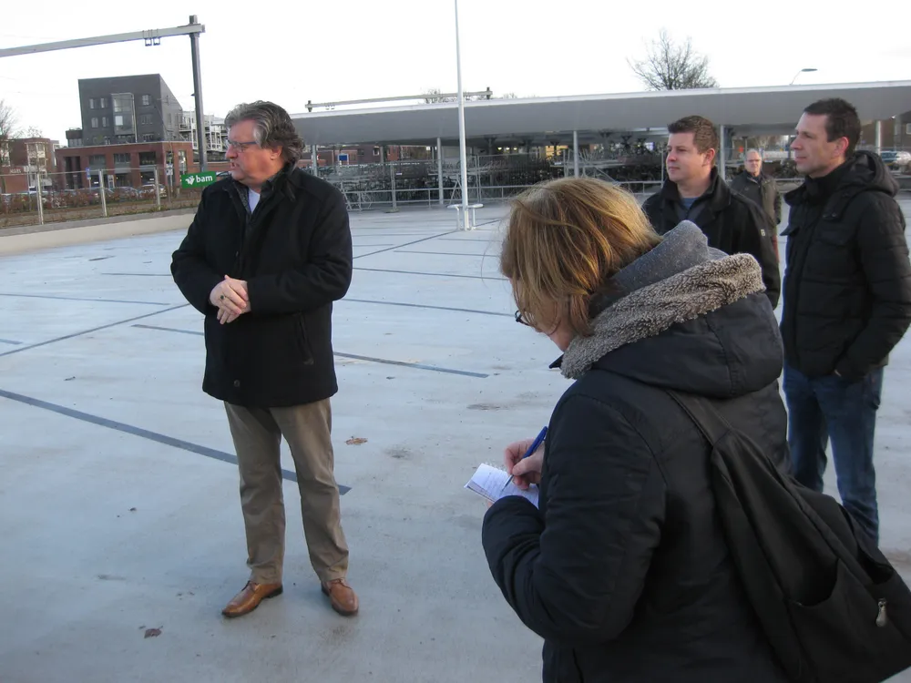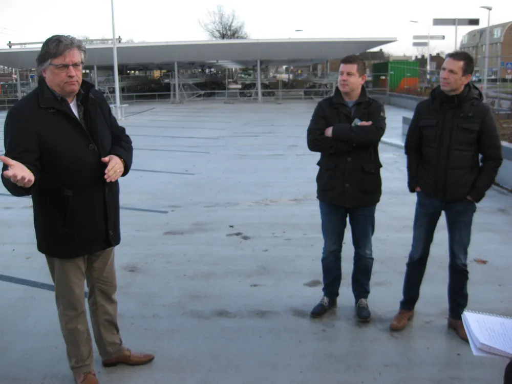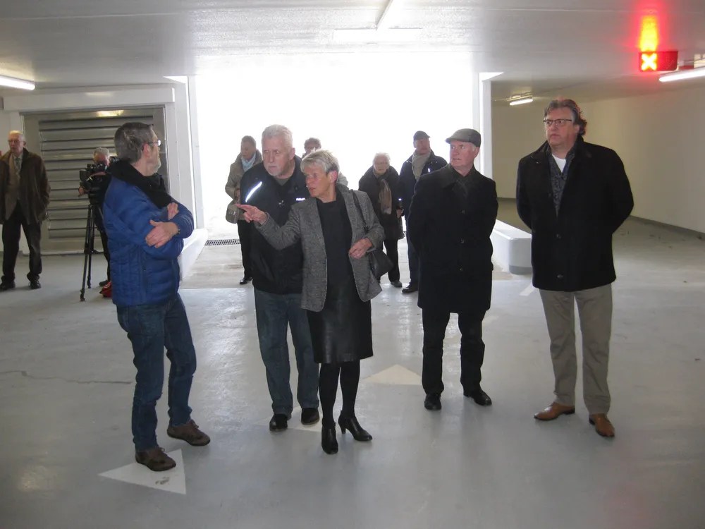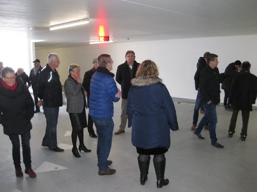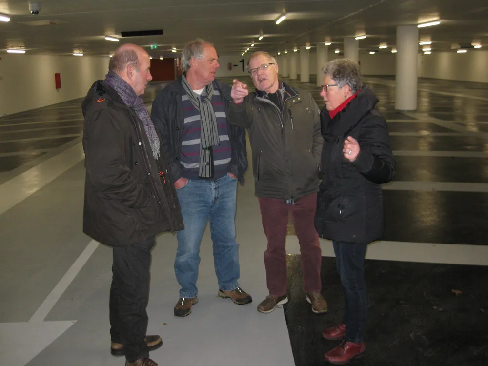 Wethouder Engels en projectleiders Ted van de Leur en Nick Bos leidden de bezoekers rond en gaven aanvullende informatie over de parkeergarage.