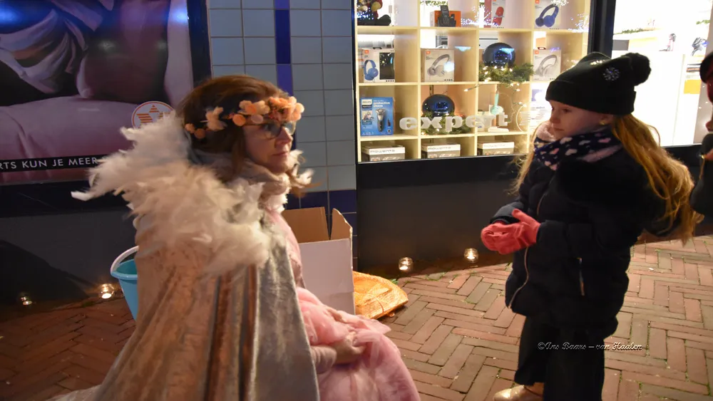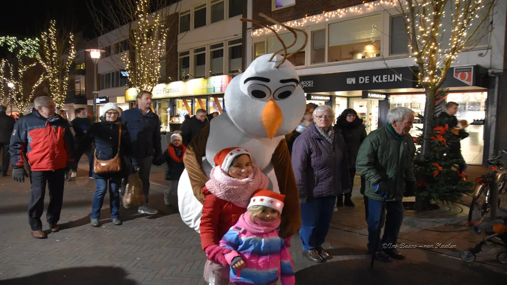 De straten in het centrum waren omgetoverd tot ‘Winterwonderland’, ‘Het Kabouterlaantje’, ‘De IJskoude Winterstraat’ en de ‘Frozenstraat’. Zo liepen de hele avond tientallen feeën, prinsessen, lakeien en andere sprookjesfiguren in het centrum en de kinderen wilden maar al te graag met hen op de foto.