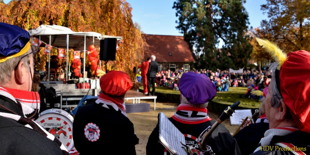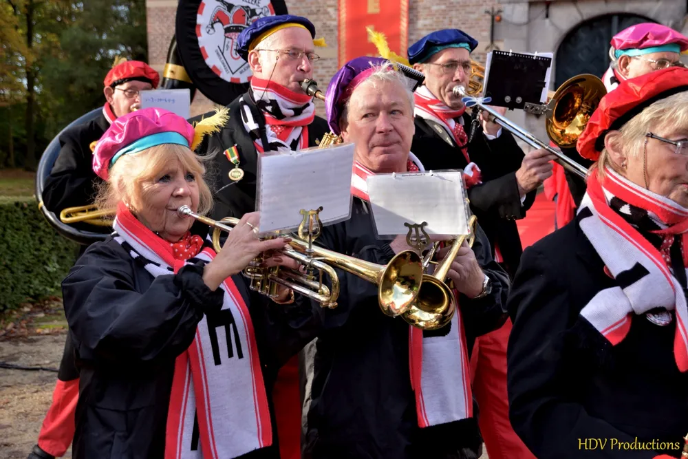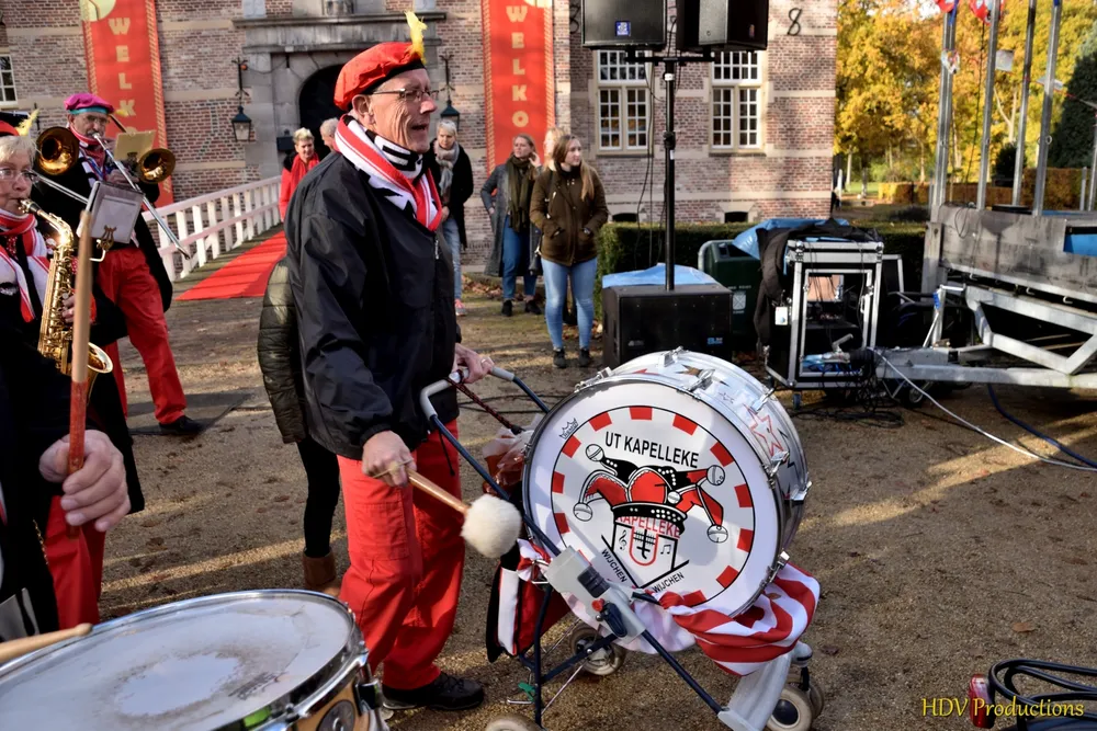 Onder begeleiding van de muziek van Ut Kapelleke verliet de stoet het Kasteel.