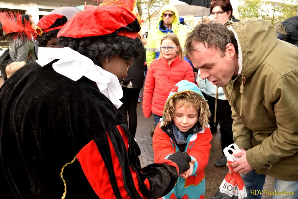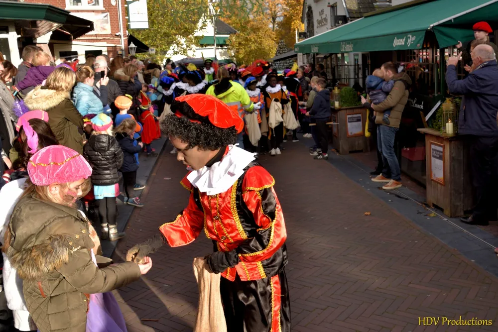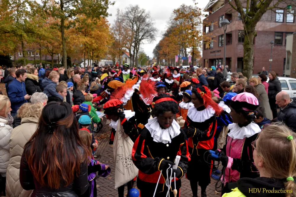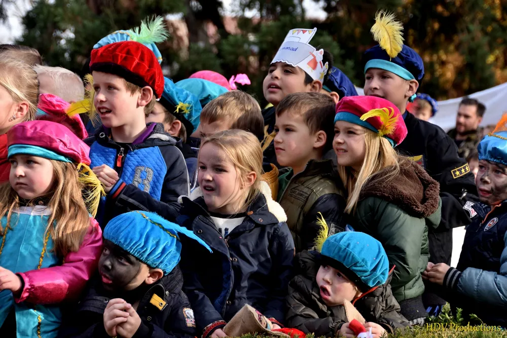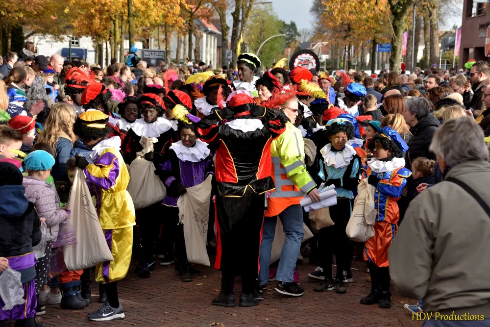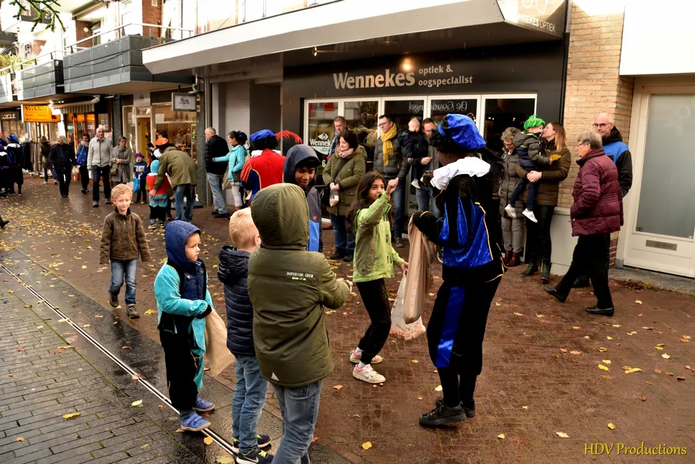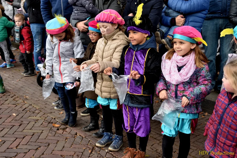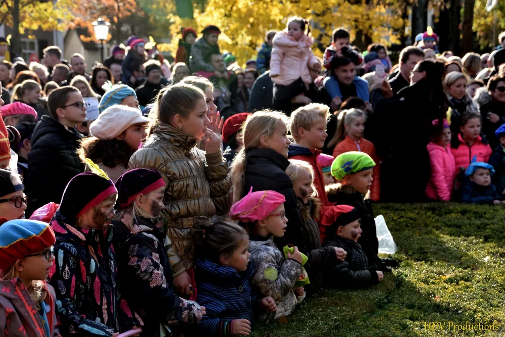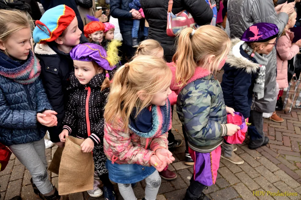 Overal waren kinderen, die kwamen door het hele dorp Sint en zijn pieten tegen.