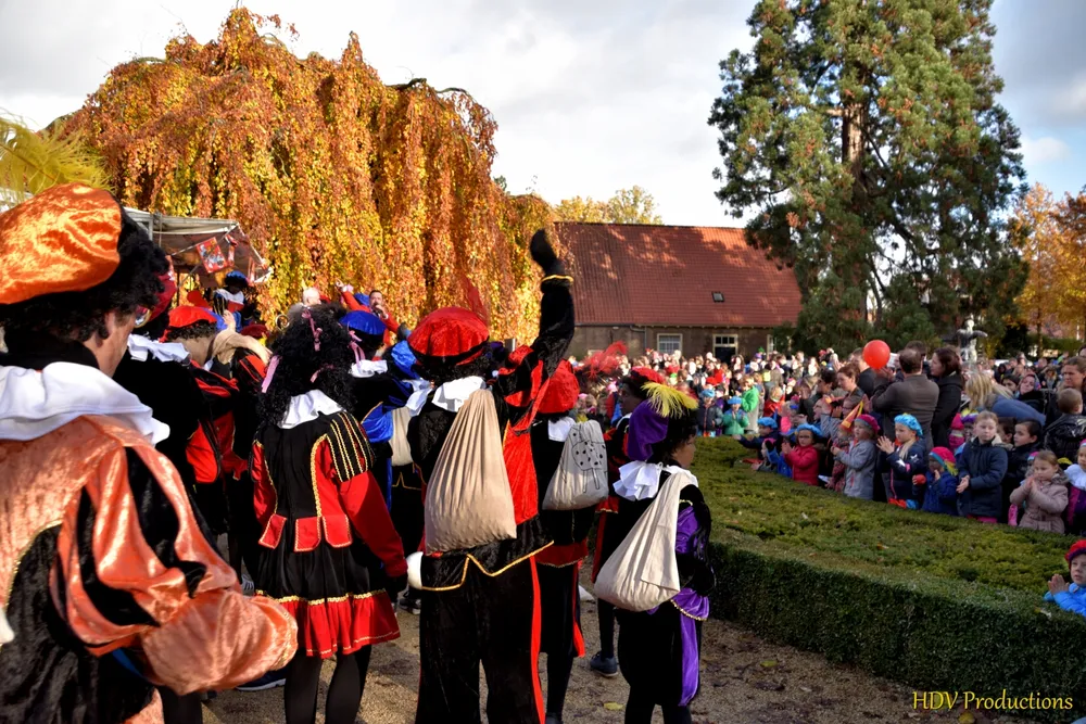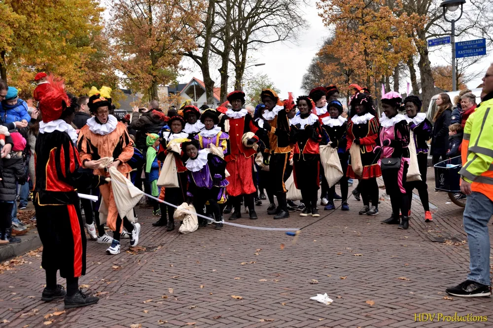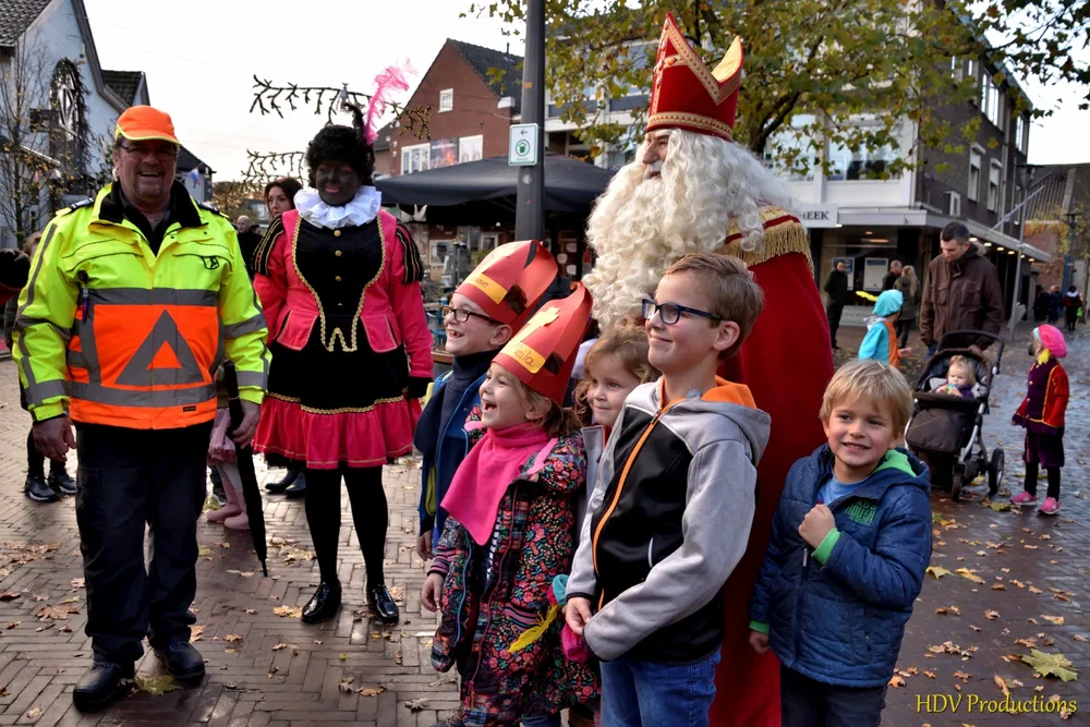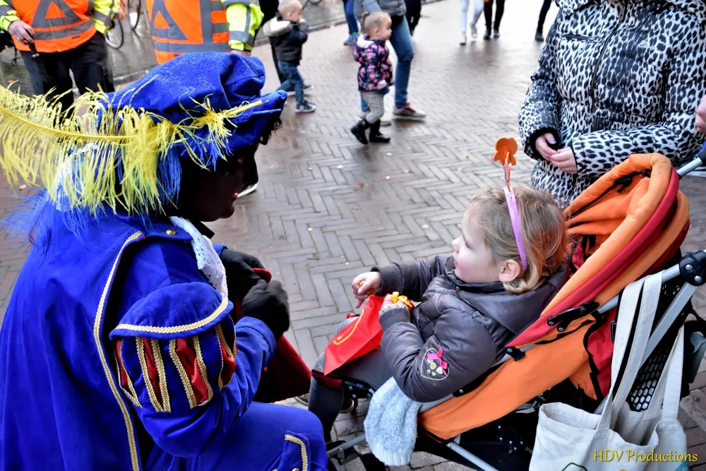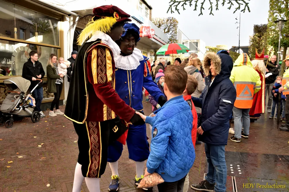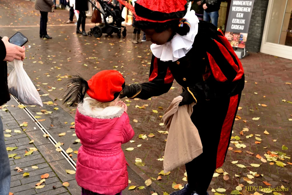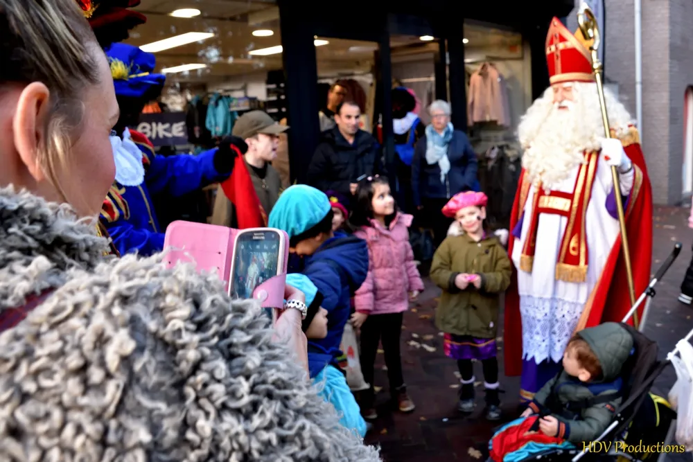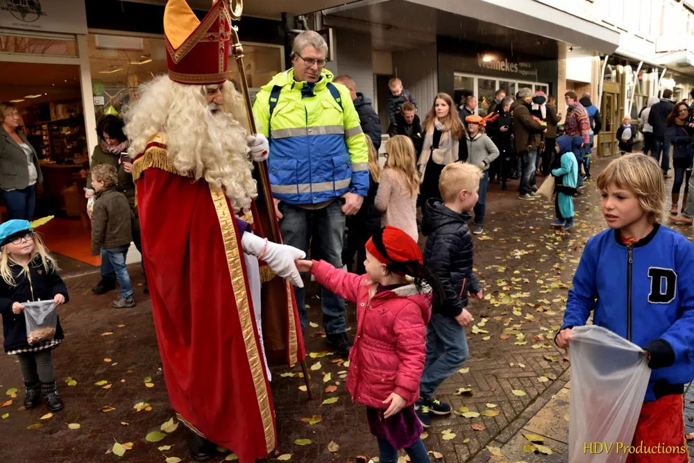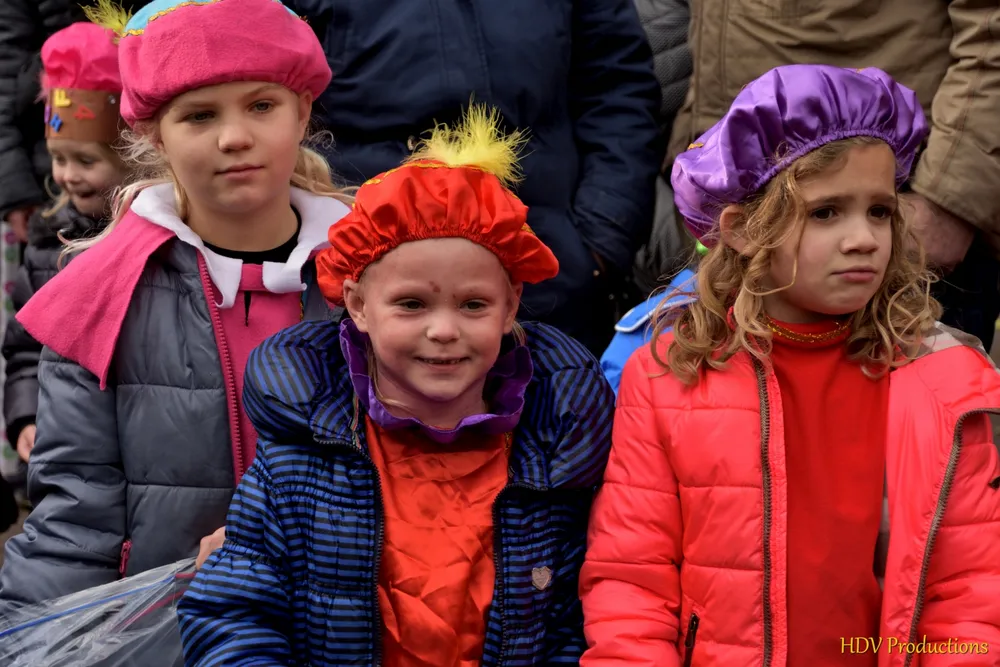 Overal waren kinderen, die kwamen door het hele dorp Sint en zijn pieten tegen.