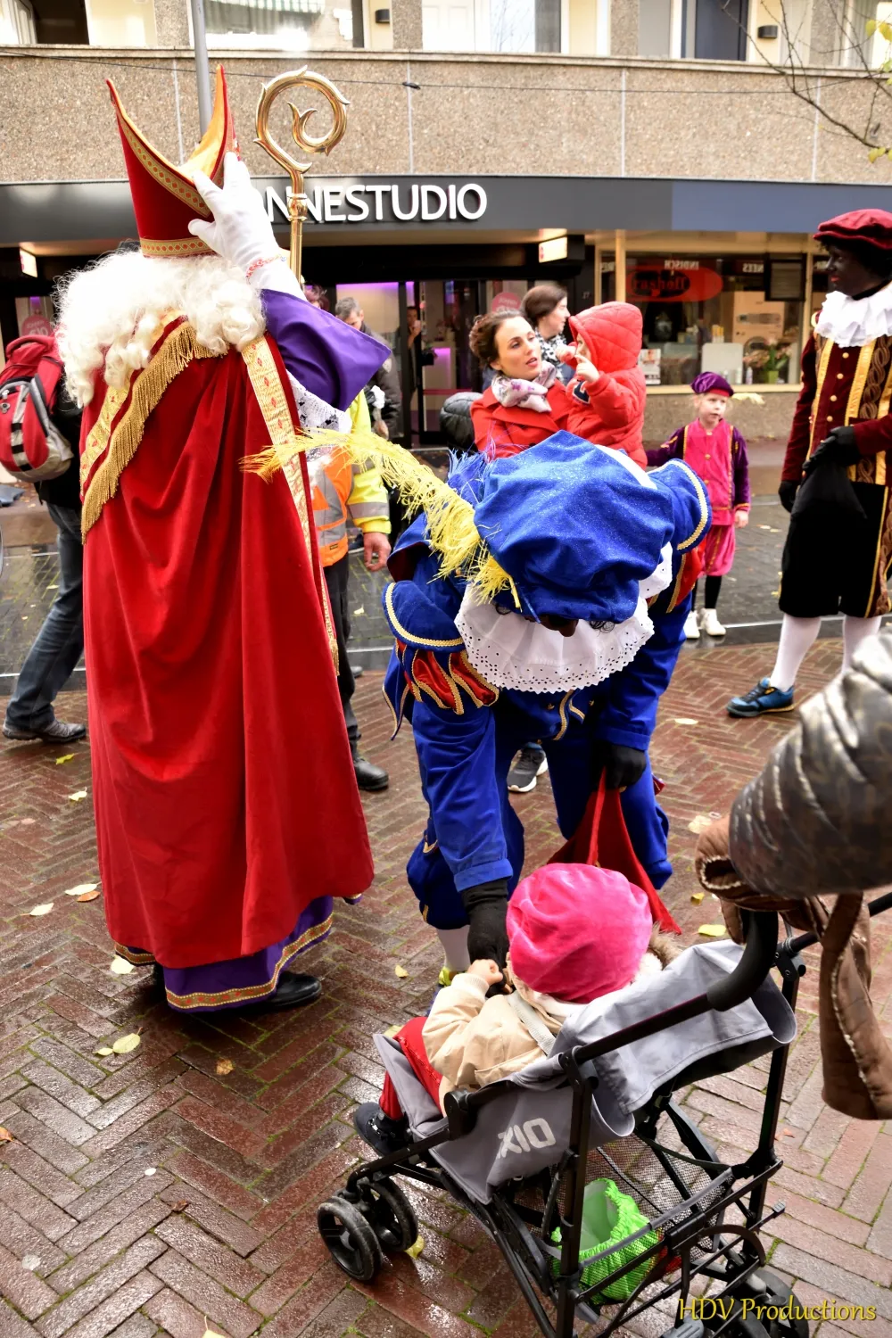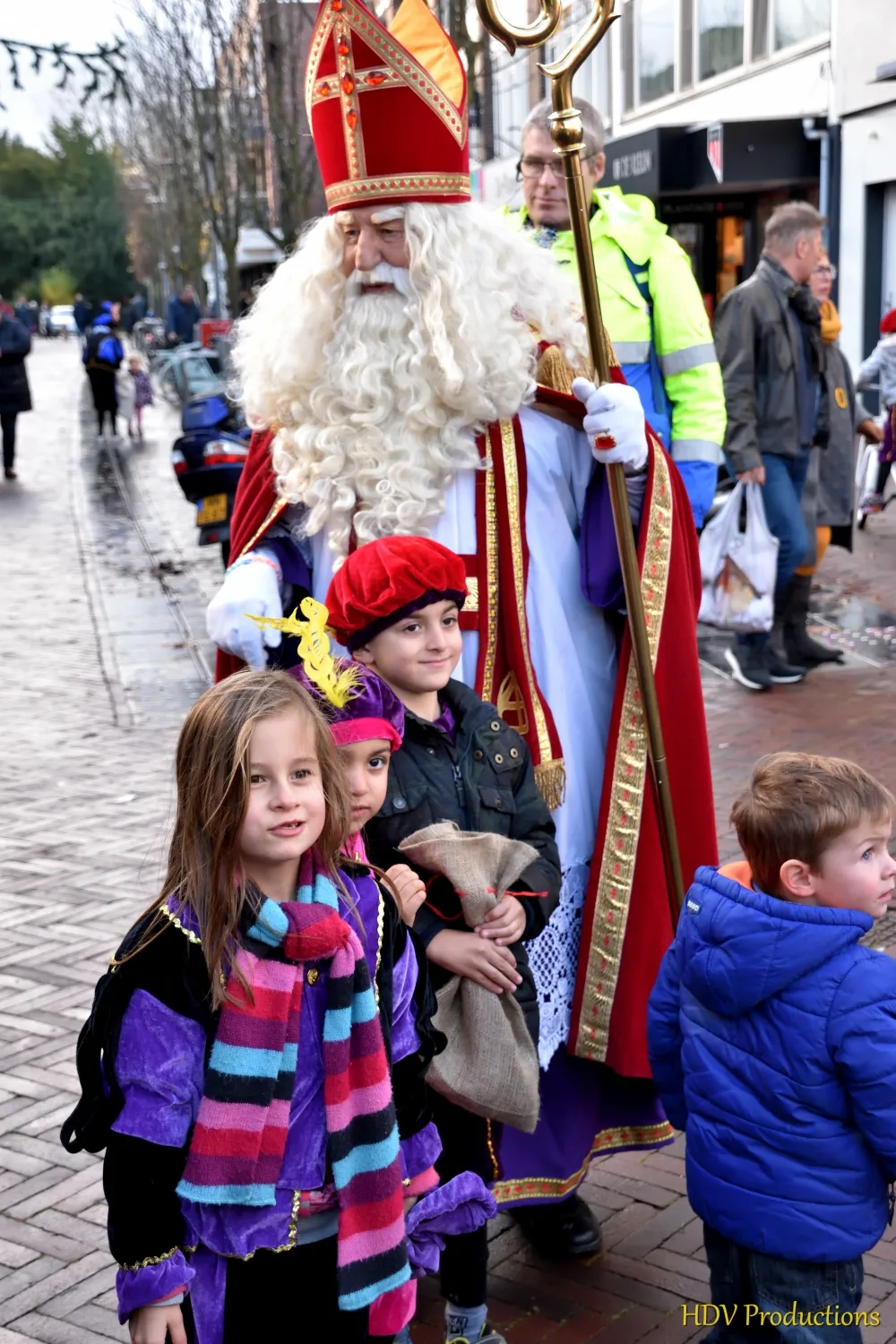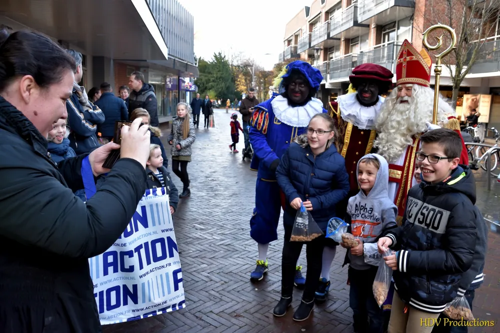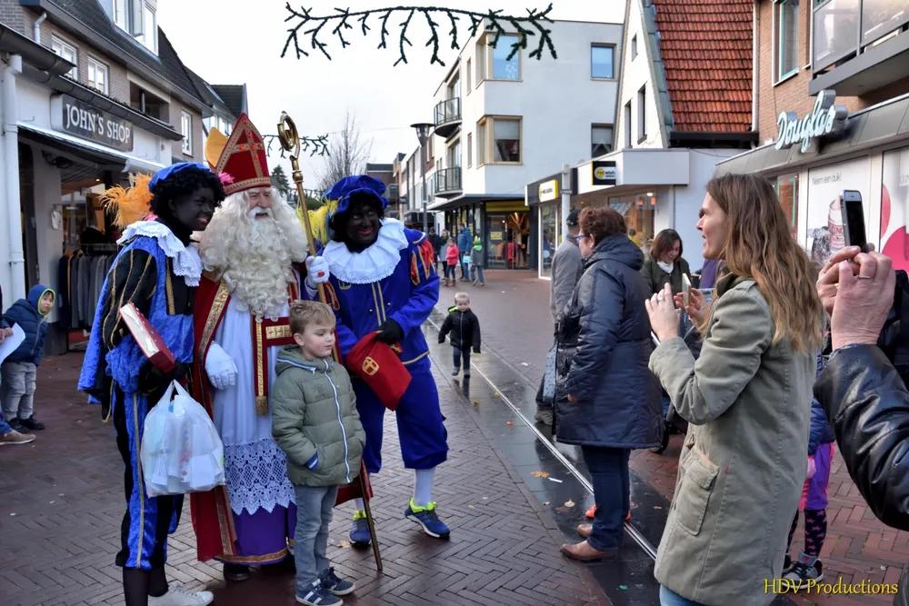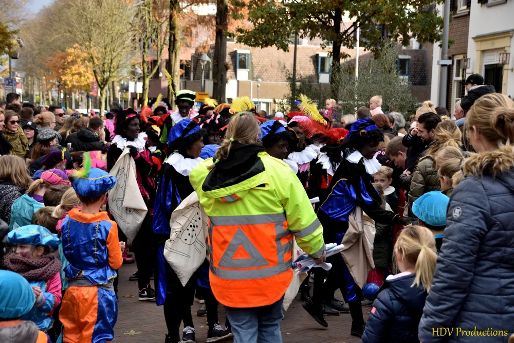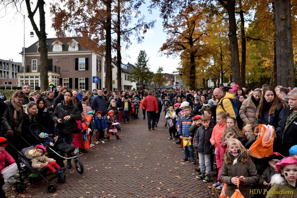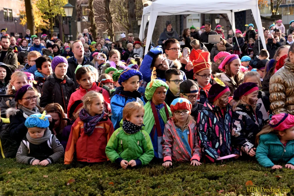 Overal waren kinderen, die kwamen door het hele dorp Sint en zijn pieten tegen.