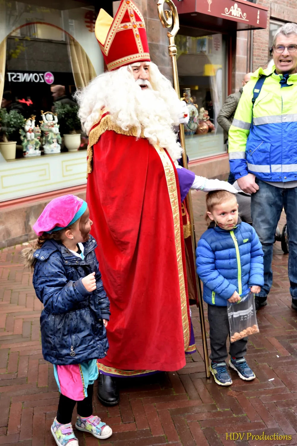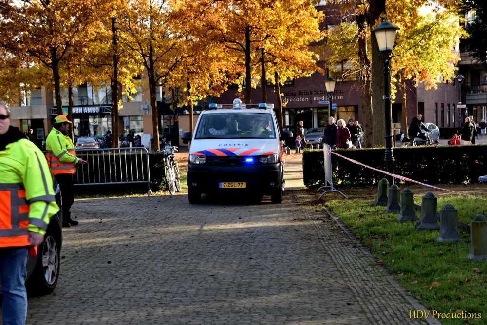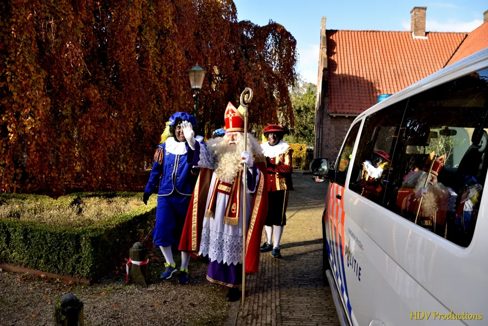 En die haalden toen snel in een politieauto met een sirene de Sint gelukkig op.