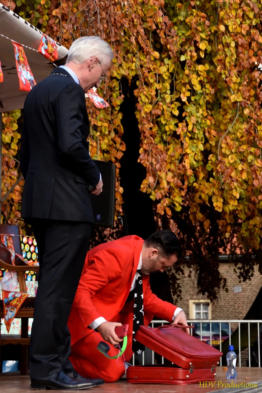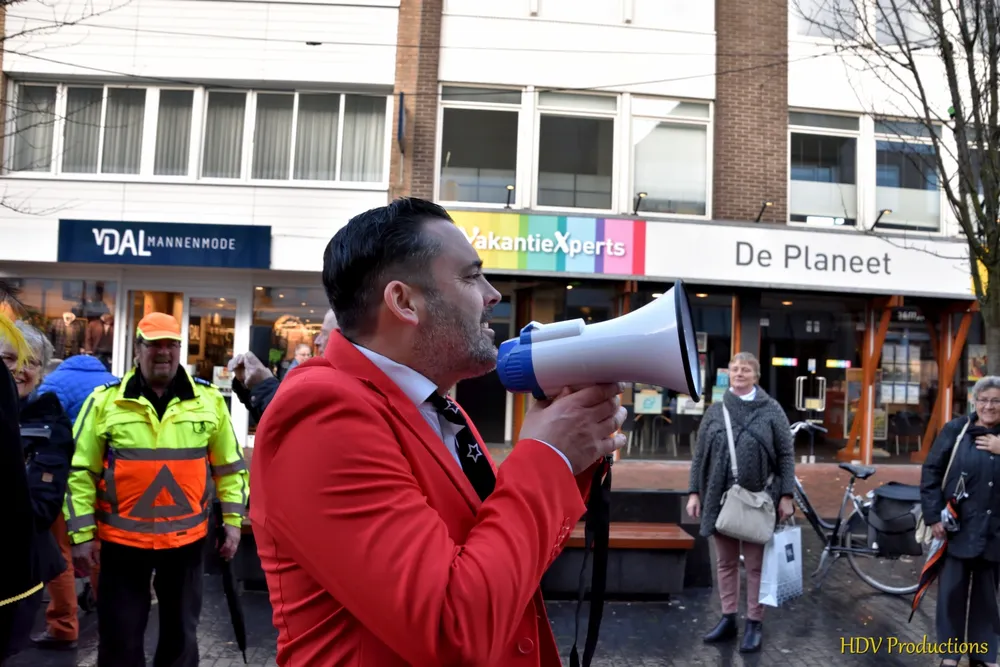 De burgemeester wist raad en liet het alarm afgaan. Dan zou de echte Sint zo hier staan.