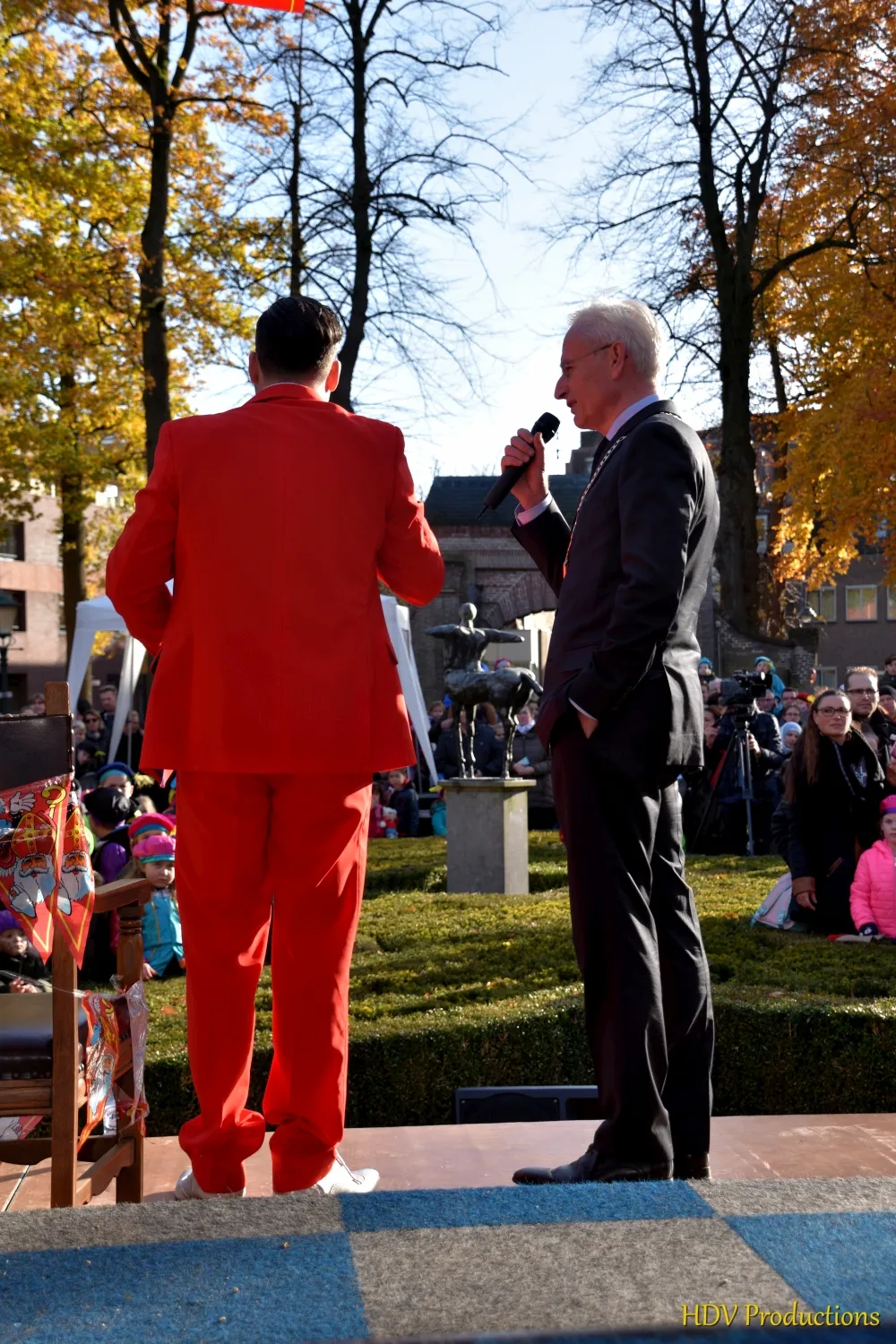 Daarop haalde reporter Koen de nep-Sint naar voren om zich aan de kinderen voor te stellen.