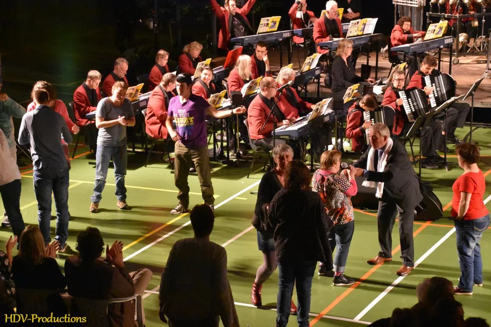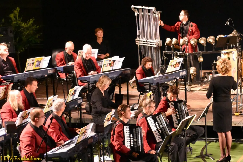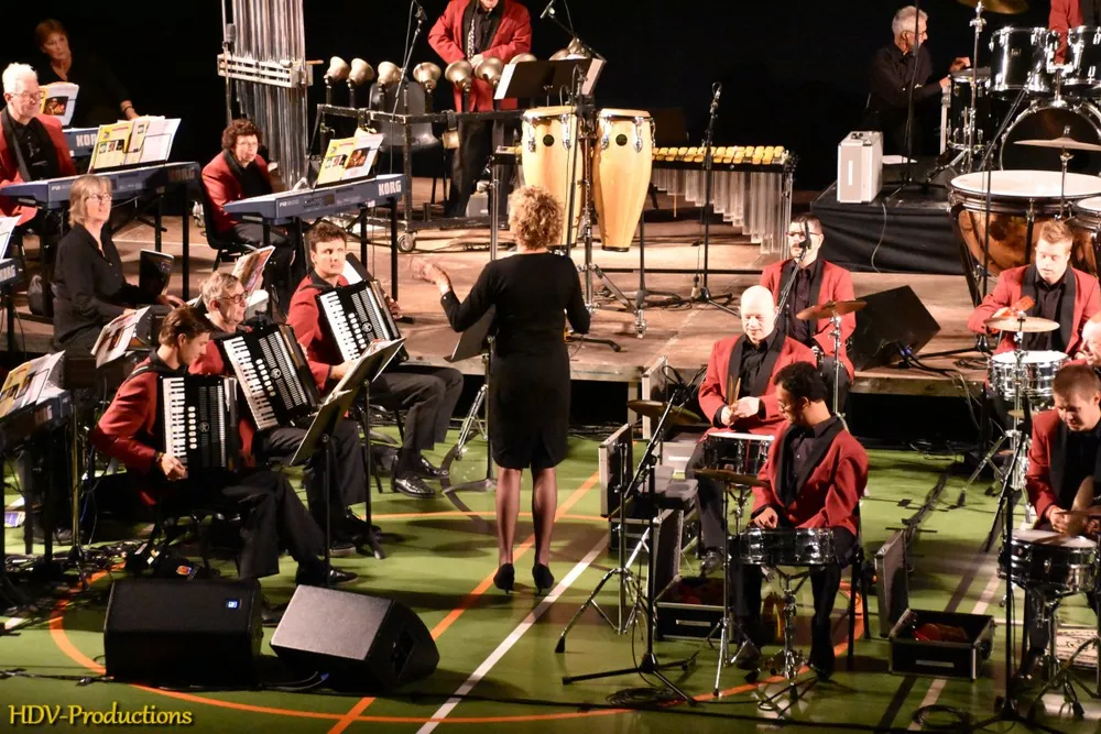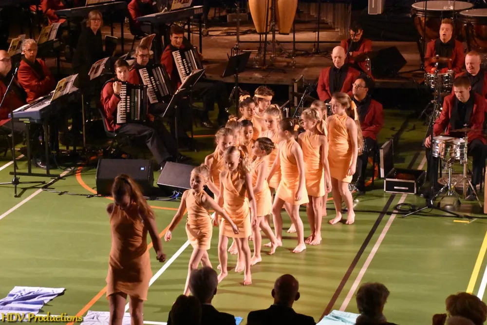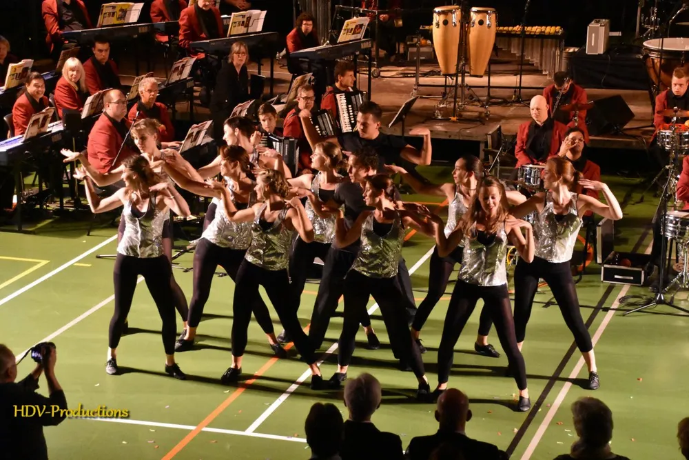 Na deze plechtigheden konden de aanwezigen gaan genieten. Eerst van een (junior) dansgroep van dansschool Stella. Daarna kon het orkest (ongeveer 65 van de ruim 150 leden waren aanwezig) gaan spelen. Dat deden ze onder de bezielende leiding van dirigente Lyanne Verburg. Die dirigeerde niet alleen haar orkest, maar gaf de leden ook ruimte om zich te uiten of om vragen te stellen. “Hoe heet die burgemeester” wekte hilariteit op. De sfeer in het orkest was relaxed en het was knap om te zien hoe veel plezier ze in het maken van muziek hadden. Het repertoire was gevarieerd.
