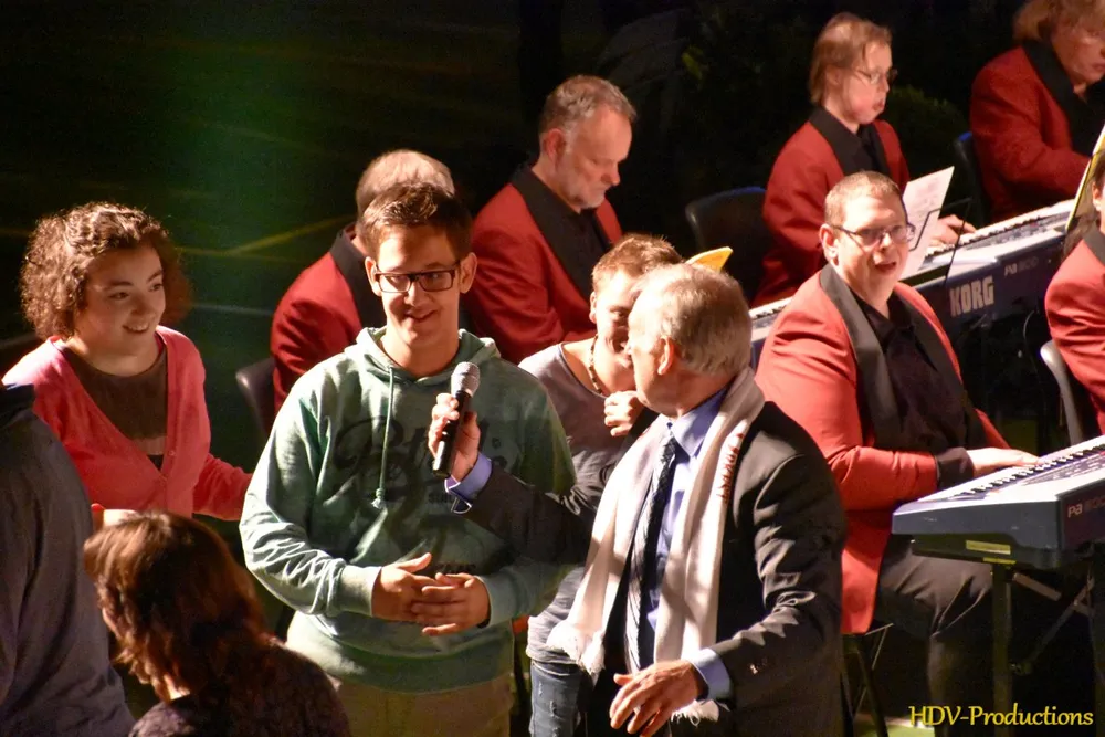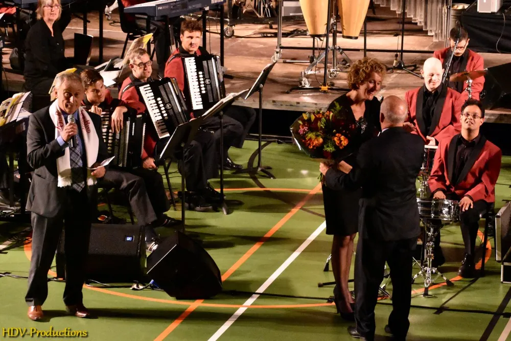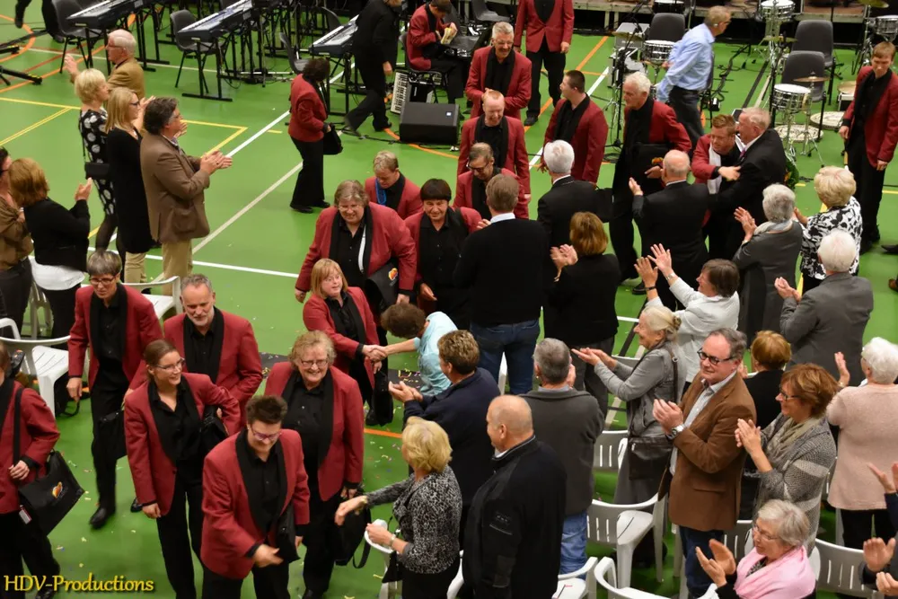 Na de pauze werd weer begonnen met dansgroep van dansschool Stella. Daarna werd er een lied gezongen, dat gecomponeerd was door Jo Toonen. Hij werd bijgestaan door een aantal ‘willekeurige’ Wijchenaren. Na dit speciaal voor de Stichting “Wij vakantie…. Zij ook” geschreven lied werd weer ruimte te geven aan de Jostiband. Ook nu weer gevarieerd qua muziek, met als bijzonderheid een nummer van Armin van Buuren. Aan het eind van hun optreden kwamen bloemen voor een aantal aanwezigen, o.a. dirigente Lyanne Verburg, Jos Verbeeten en Stella van Wanrooij en niet te vergeten Jo Toonen. Aangezien er nog tijd over was, moest er natuurlijk nog een “encore”gespeeld worden en kon er gedanst worden op de ruimte voor het orkest. Voor wie het gemist heeft: het was een geweldige avond!