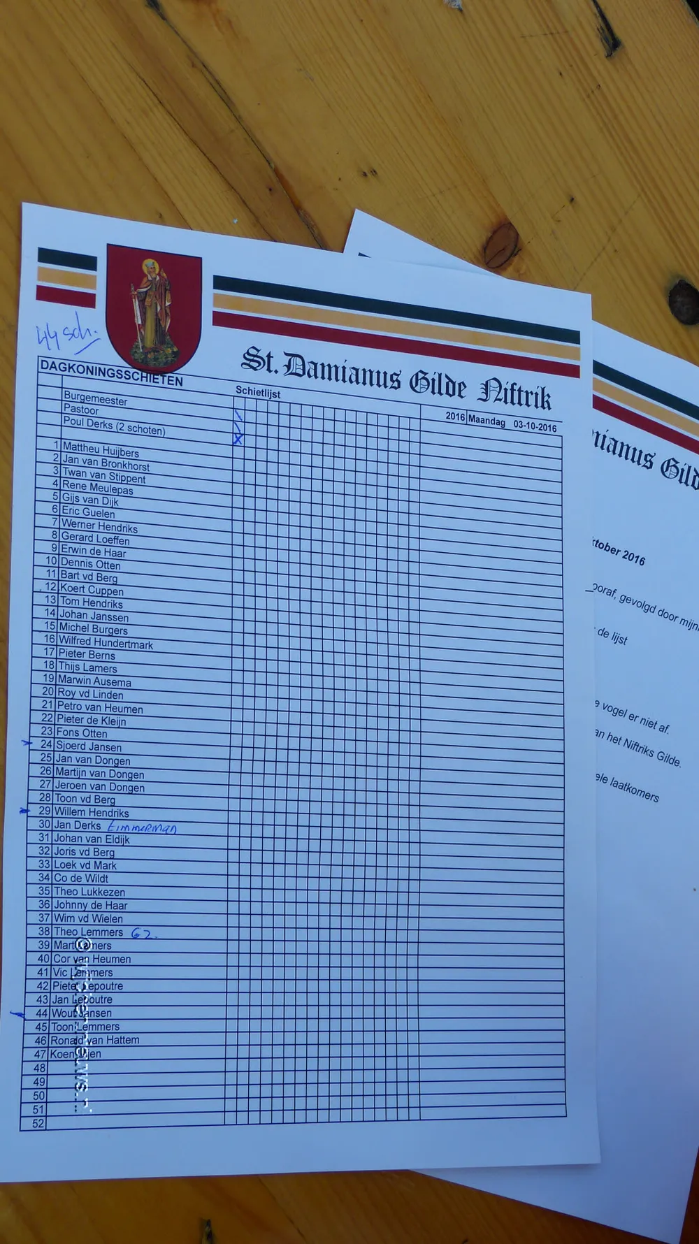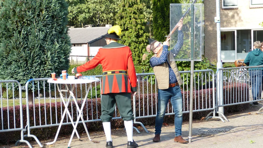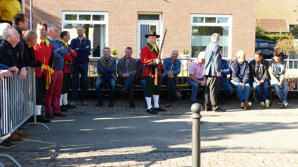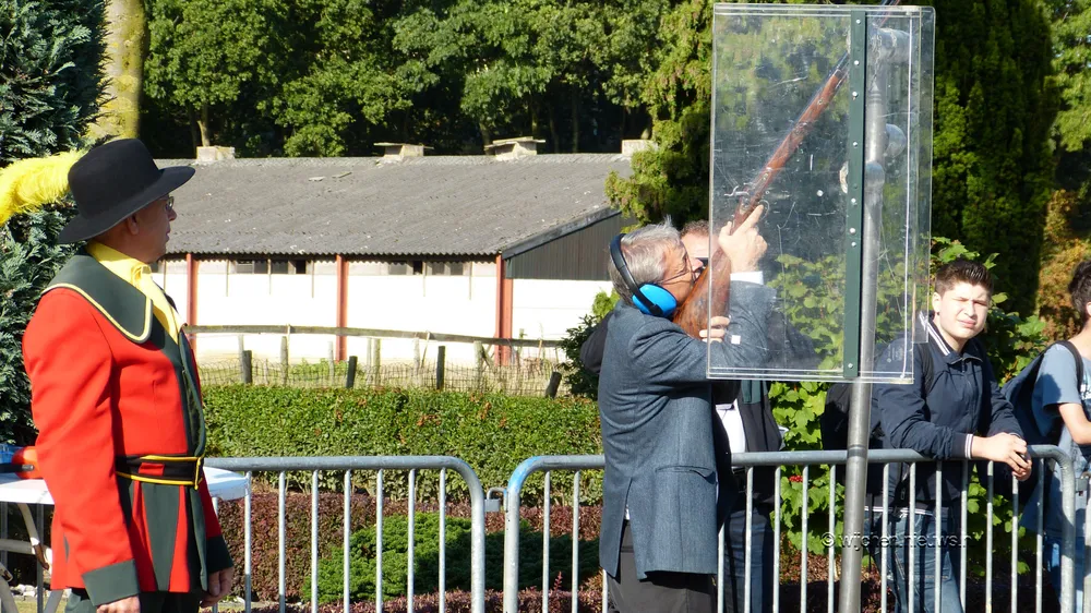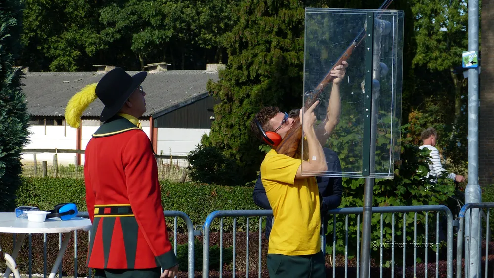 Zoals elk jaar mocht de burgemeester als eerste schieten, gevolgd door pastoor Martin Claes en Koning Poul Derks. Hierna was het de beurt aan de 44 schutters. En 143 schoten later was de Dagkoning bekend. Werner Hendriks wist het laatste stuk van de 'vogel' naar beneden te schieten.