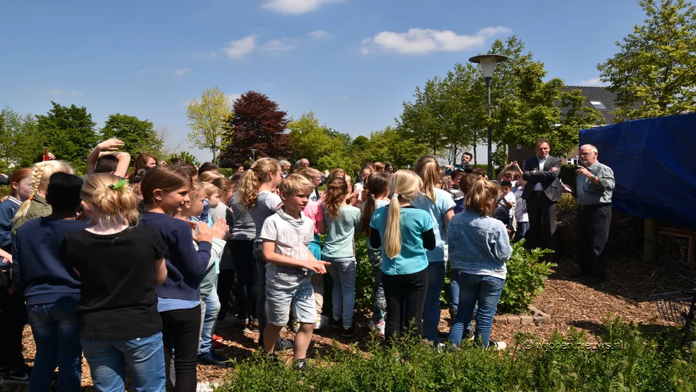 Nico van der Greft is één van de vrijwilligers, "Een jaar of 4 a 5 geleden hebben we de moestuin ontworpen/opgericht en het onderhoud doen we samen met groep 6 van de Trinoom. We hebben er ook al een kruidentuin erbij en nu zijn we met een insectenhotel erbij weer een stap verder. Omdat we een verbinding willen maken met insect, moestuin en de kruidentuin. We hebben ook een informatiebord geplaatst waarop deze verbinding wordt beschreven."