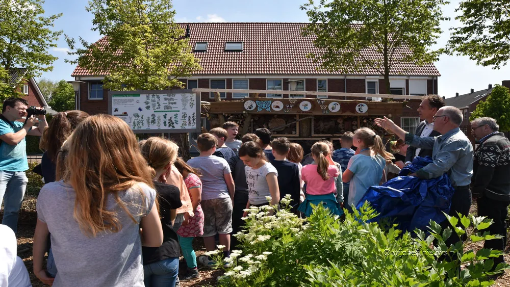 Zaterdag 29 april werd het begin gemaakt met de opbouw van het insectenhotel, een mooi initiatief van de vrijwilligers van de moestuin van wijkcentrum De Brink dat mede bewerkstelligd kan worden door een Meedoenertje van Meervoormekaar. De onthulling van het insectenhotel bij wijkcentrum De Brink mocht wethouder Geert Gerrits woensdag 10 mei doen. Ook waren er zo'n 75 kinderen van groep 6 van de Trinoom aanwezig.