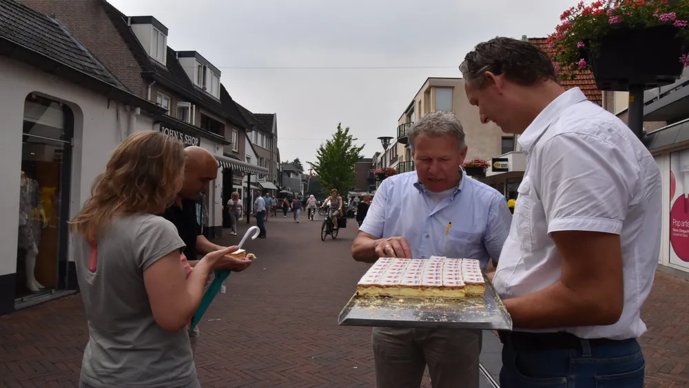 Om dit te vieren werd er een rondje in het centrum gemaakt om de ondernemers en het winkelend publiek te trakteren op een overheerlijke tompoes. De tompouces waren allemaal voorzien van het nieuwe logo van “Wijchen=”.