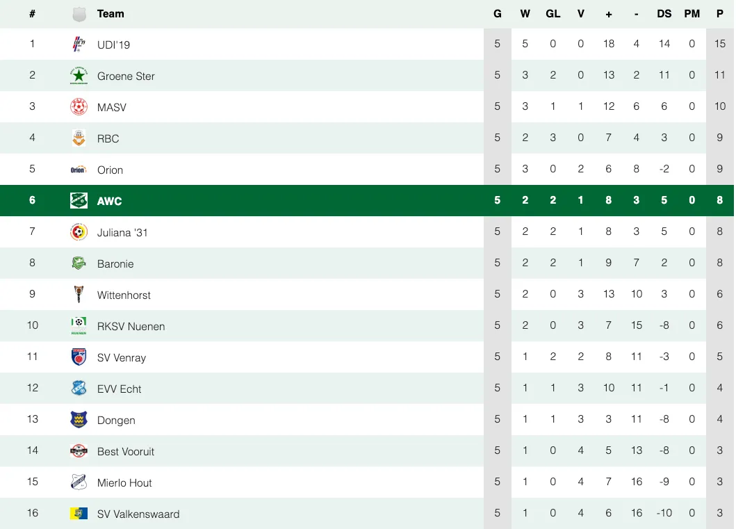 Voor komende zondag staat een thuiswedstrijd op het programma. AWC ontvangt dan RKSV Nuenen (aanvang 14.00 uur).