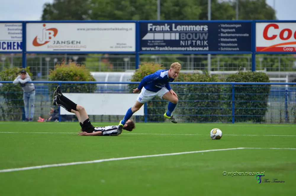 Na een kwartier stond de 1-0 al op het bord. Michael Jansen kopte na voorbereidend werk van Gijs Diebels de bal in het doel. Een kwartier later stond de 2-0 bijna op het bord, maar de doelman van SJC kon nog net redding brengen op een Woezikse inzet. Daarmee was de ruststand 1-0.