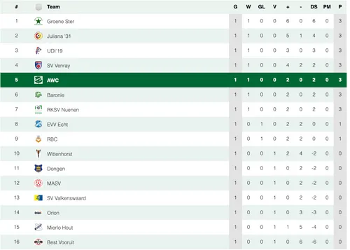 Komende zondag ontvangt AWC thuis Mierlo-Hout dat in zijn eerste wedstrijd thuis met 5-1 onderuitging tegen Juliana’31.
