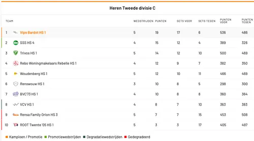 Trivos staat nu derde. De eerstkomende wedstrijd is komende zaterdag, uit tegen Rebelle in Rhenen.