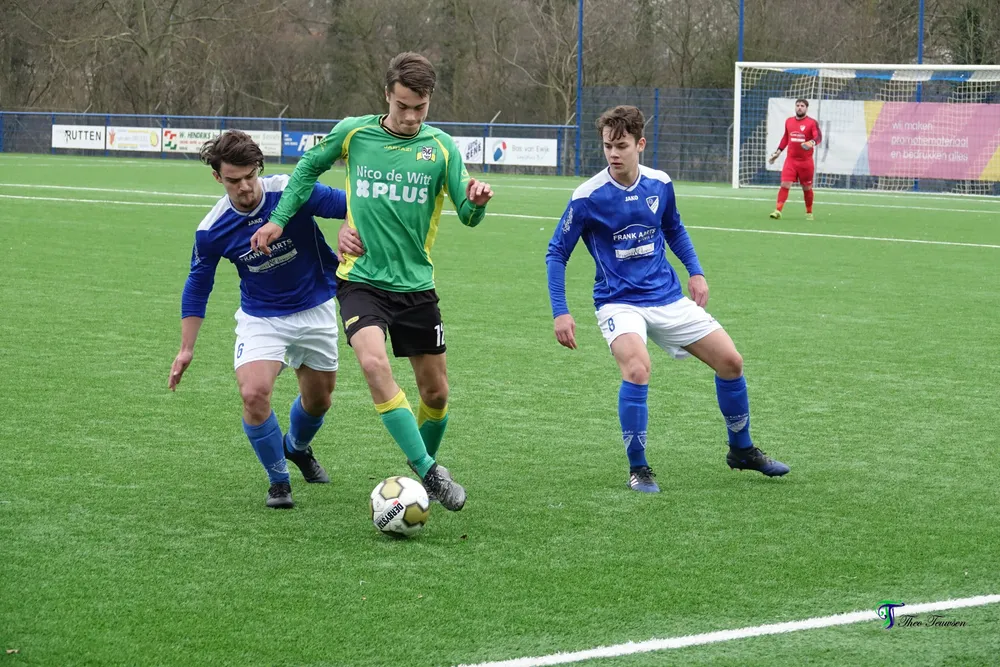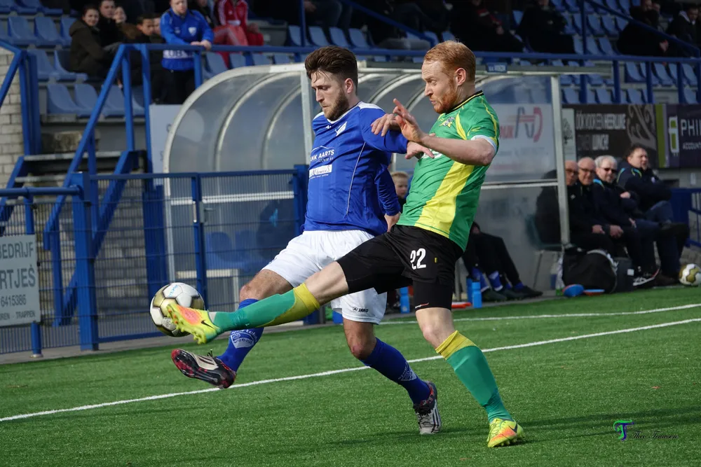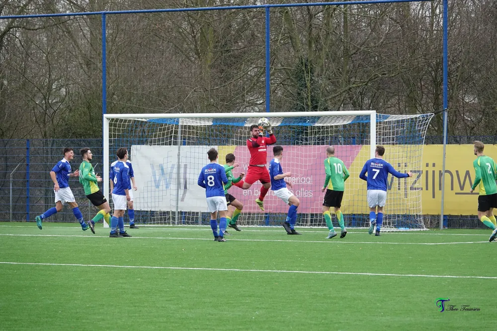 Woezikkeeper Sander Maas wist in de 37e minuut met een mooie redding de 1-0 te voorkomen, maar moest in de 41e minuut toch zijn meerder erkennen in Luuk Rossen. En 4 minuten later moest Maas de bal weer uit het net halen na een goede een kopbal van Wahid Rashidi. Ruststand 0-2.