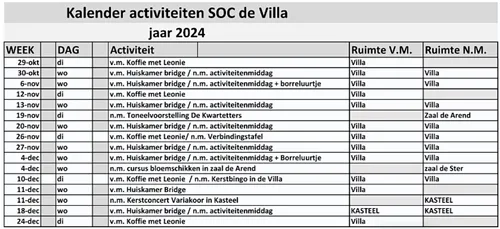 seniorenontmoetingscentrum (SOC) de Villa actief als kleinschalige ontmoetingsruimte voor zelfstandig wonende senioren in het centrum van Wijchen.