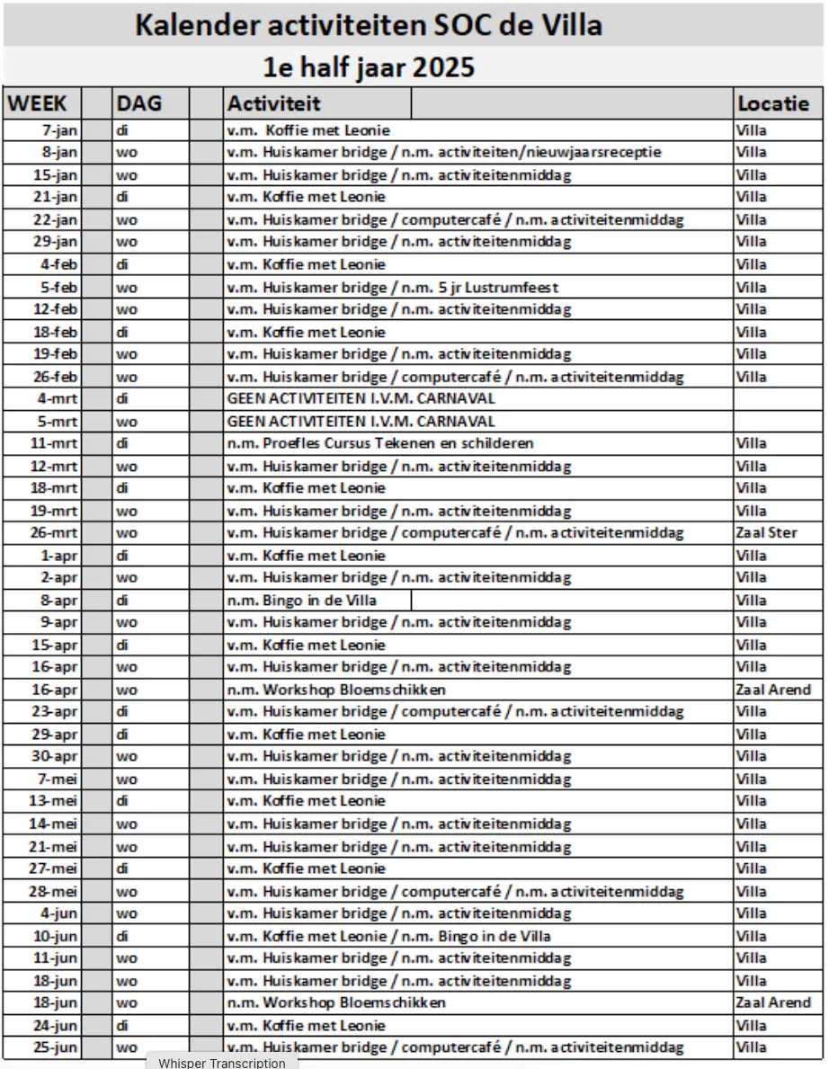 Sinds november 2019 is seniorenontmoetingscentrum (SOC) de Villa actief als kleinschalige ontmoetingsruimte voor zelfstandig wonende senioren in het centrum van Wijchen.